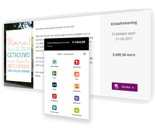Uw klanten kunnen zelf het event of de bruiloft bij u boeken door middel van een aanbetaling.